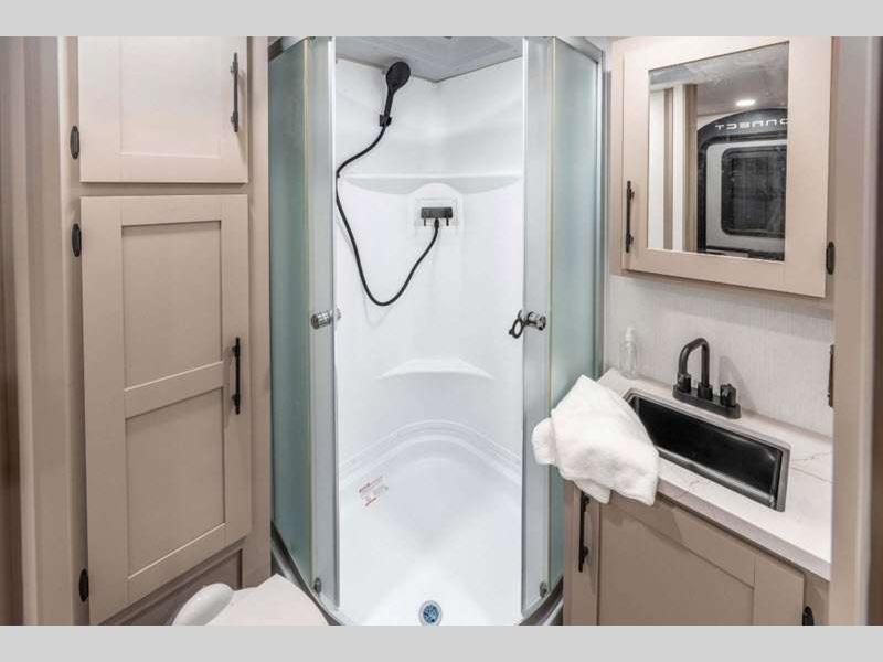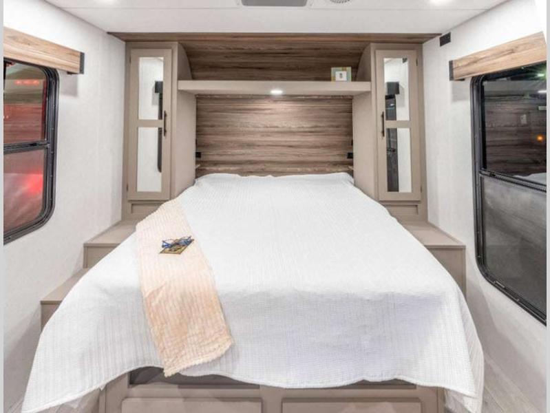 Sleeps 3 Slides 1 Length 24 ft 1 in Ext Width 8 ft Ext Height 10 ft 10 in Int Height 6 ft 6 in Interior Color Chocolate, Mink Hitch Weight 490 lbs GVWR 6500 lbs Dry Weight 4750 lbs Cargo Capacity 1750 lbs Fresh Water Capacity 45 gals Grey Water Capacity 32 gals Black Water Capacity 32 gals Tire Size 15" Furnace BTU 30000 btu Available Beds Queen Refrigerator Type 12V Refrigerator Size 10 cu ft Cooktop Burners 3 Shower Size 34" X 34" Number of Awnings 1 Axle Weight 4260 lbs LP Tank Capacity 20 lbs Water Heater Type Tankless AC BTU 13500 btu Cargo Deck Size 0 ft Awning Info 16' Power w/LED Lighting Axle Count 2 Number of LP Tanks 2 Shower Type Radius Electrical Service 30 amp Similar Floorplans